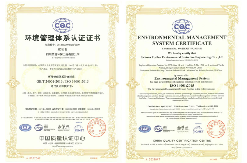 CQC环境管理体系认证证书00123E32077R2S/5100